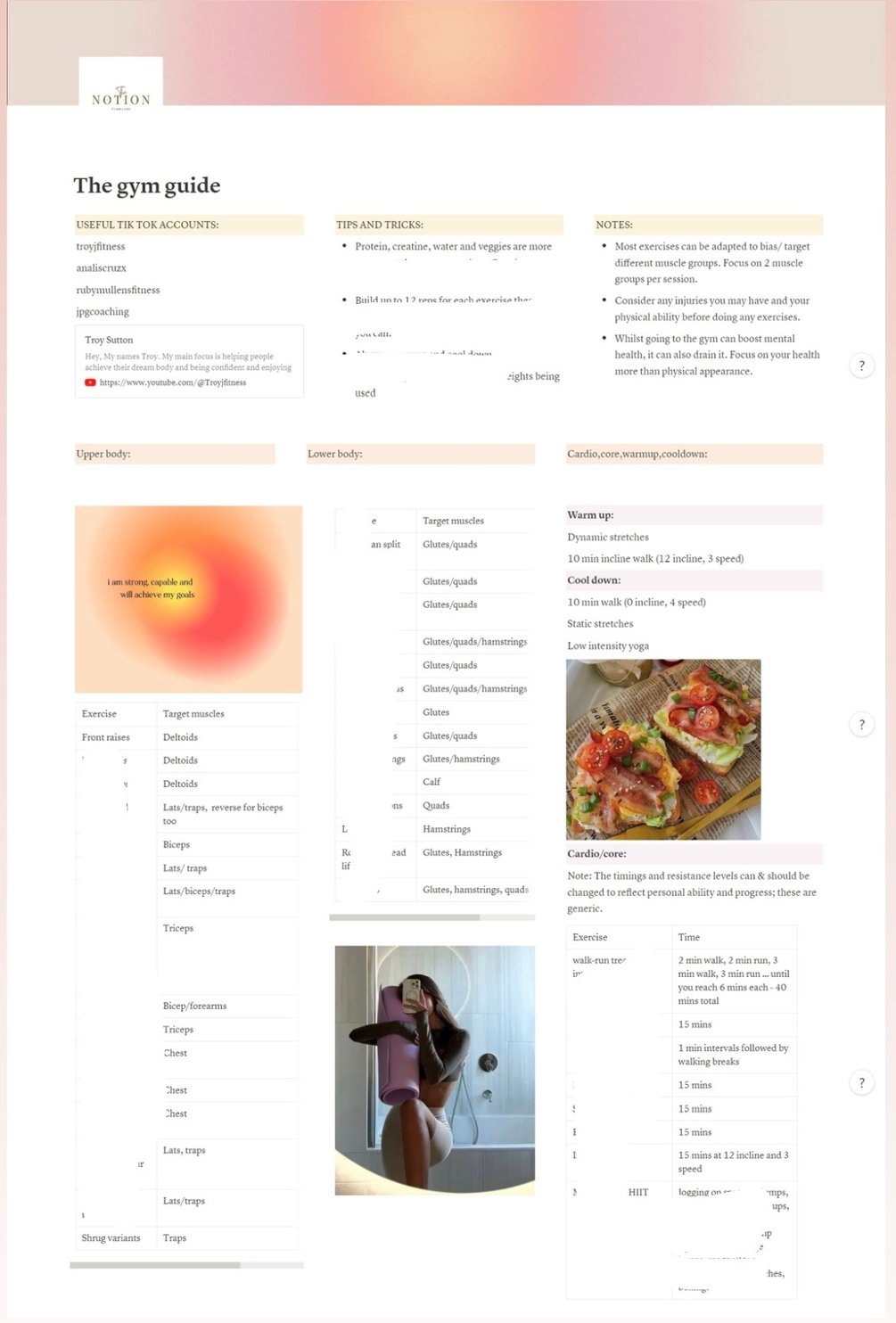 A comprehensive guide to the gym including: Tips and tricks, excersises and which muscles they target, and suggested videos.